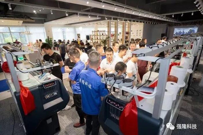 ในวันแถลงข่าว การเปิดตัวอย่างยิ่งใหญ่ - เครื่องถักนิตติ้งแบนระบบคอมพิวเตอร์หัวเล็ก Qianglong 18 เครื่อง และเครื่องถัก vamp 3D หัวเล็ก 18 เครื่อง